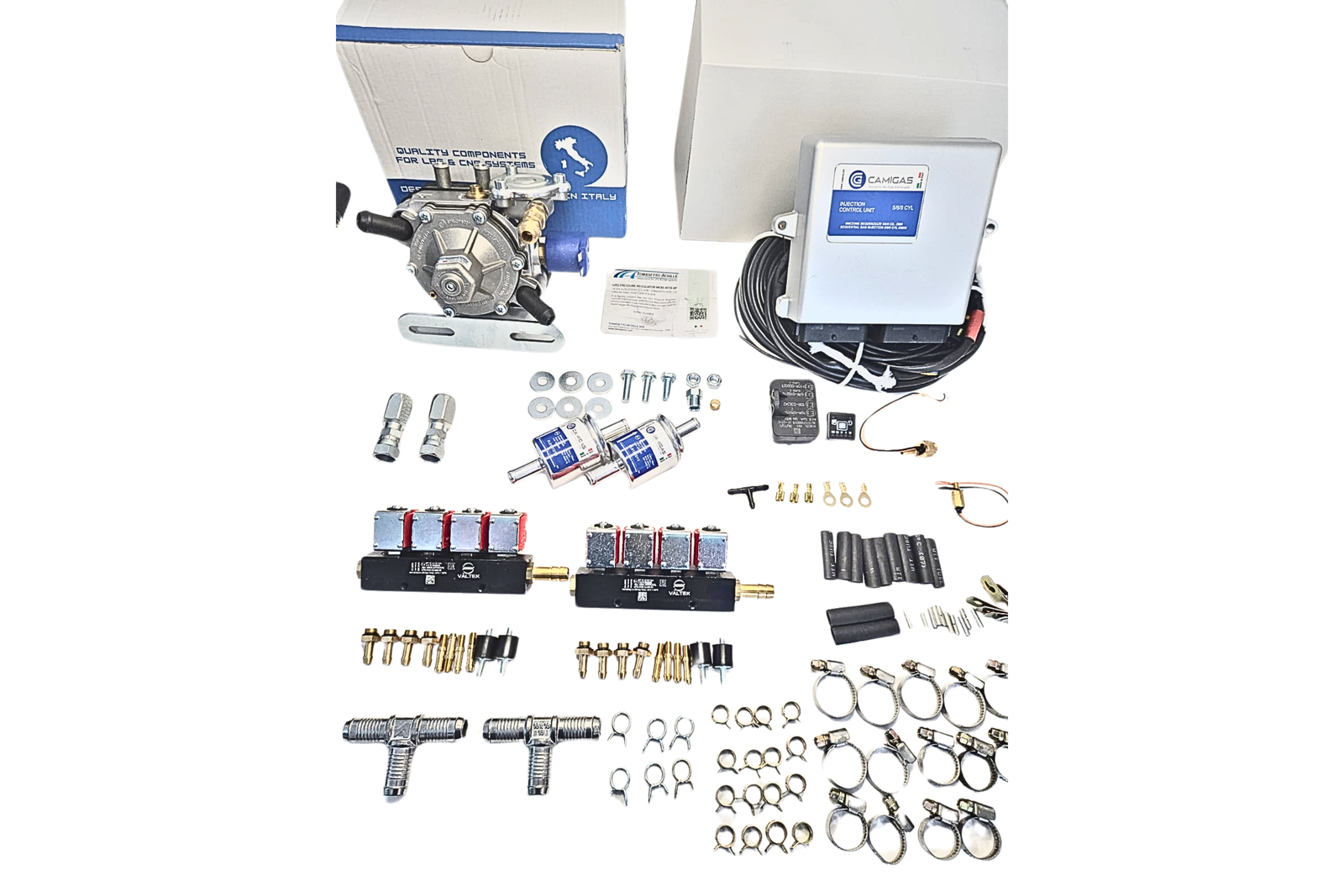 | Kit 5ta Gen 10 cilindros GLP Tomasetto AEB Camigas | KIT 10 CIL. GLP CAMIGAS Equipo suministrado: ECU AEB 2010 y una bolsa de accesorios … | CAMIGAS AEB 2010 es una Unidad de Control Electrónico diseñada para administrar sistemas secuenciales de autogás en vehículos con motores de hasta 10 cilindros. Se conecta a través de un arnés a través de 3 juegos de enchufes de 24 pines ubicados en la parte inferior de la unidad. | KIT 5TA GEN, CAMIGAS, ELECTRONICA Y SISTEMAS COMPLETOS DE GAS, TOMASETTO | |||