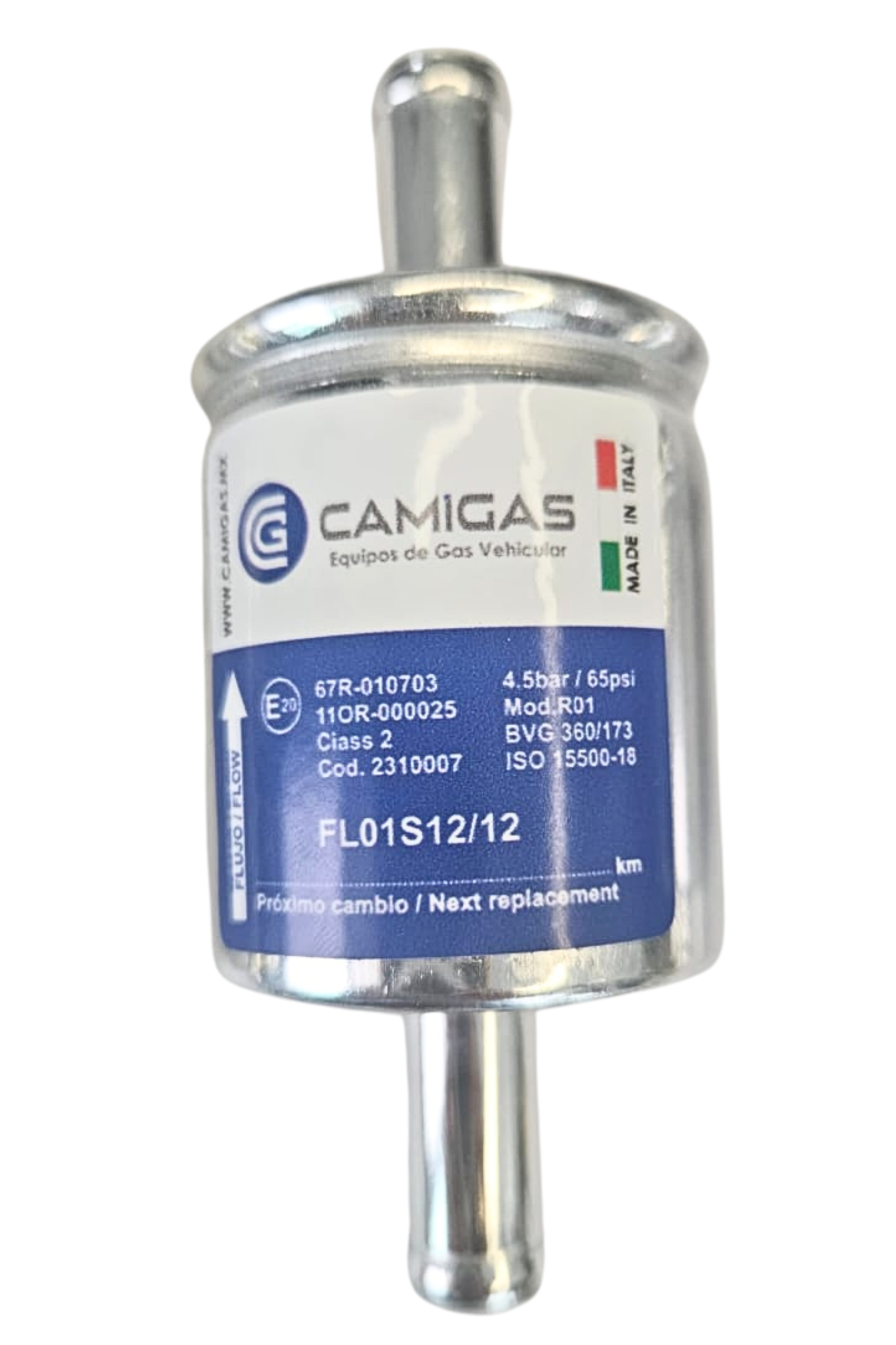 | Filtro de fase gaseosa 12/2x12 mm [FL01YP] | El filtro de fase gaseosa 12/2×12 mm (poliéster, desechable) es un filtro completo que consta de … | El filtro de fase volátil Camigas – FL-01YP 12/2×12 mm está diseñado para su uso en instalaciones de GLP en automóviles. Su función principal es detener las impurezas que podrían entrar en el motor en la fase volátil. | FASE GASEOSA, PARTES DE GLP/GNC | |||