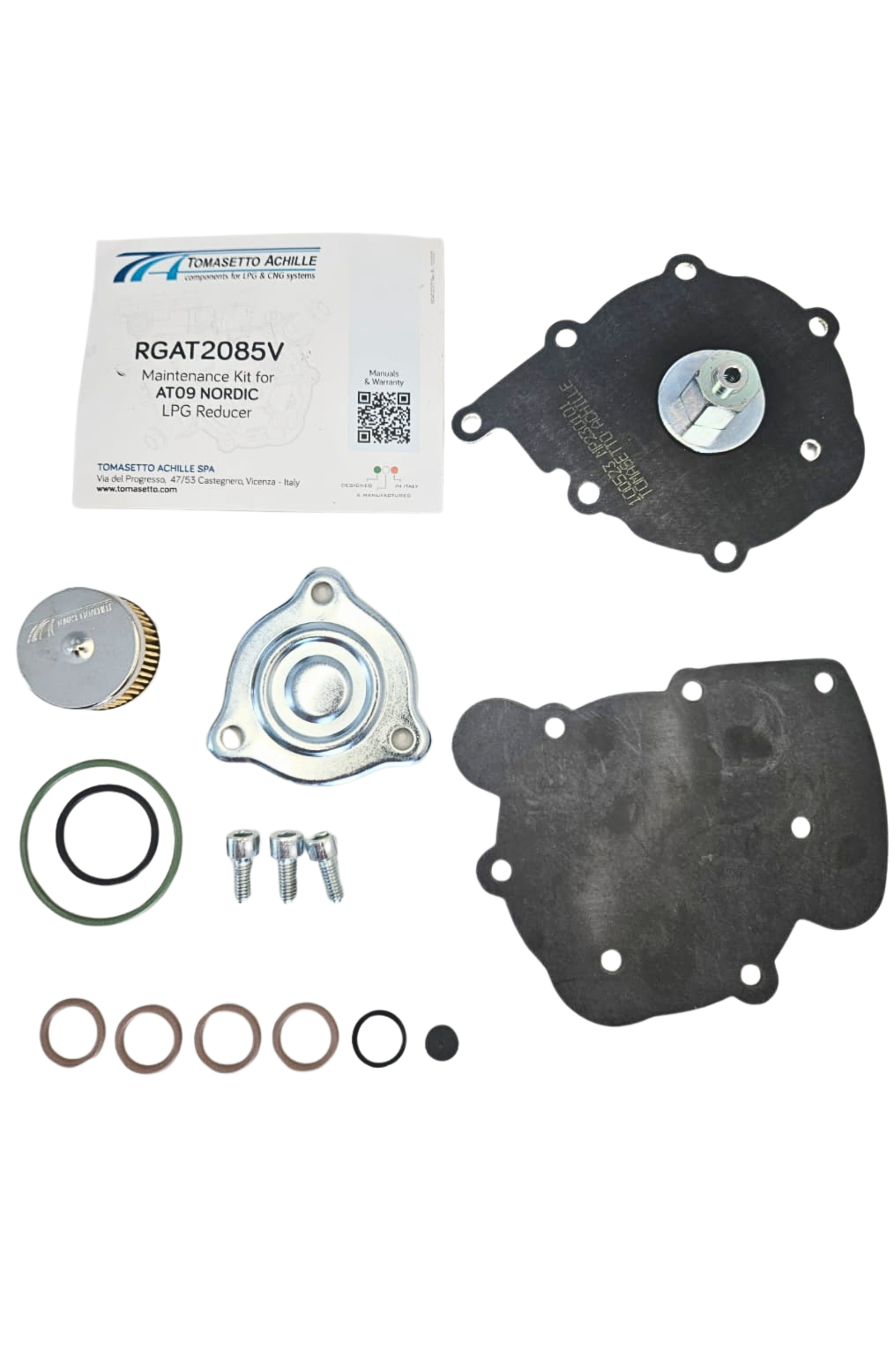 | Kit de mantenimiento AT09 Alaska y Alaska Super para reductor GLP [RGAT2090] | Kit de reparación reductor TOMASETTO – ALASKA AT09 – conjunto de elementos de goma necesarios … | Kit de reparación reductor TOMASETTO – ALASKA AT09 – kit de reparación original para reductor-evaporador AT09 ALASKA de la empresa italiana TOMASETTO. | PARTES DE GLP/GNC, KIT DE MANTENIMIENTO | |||